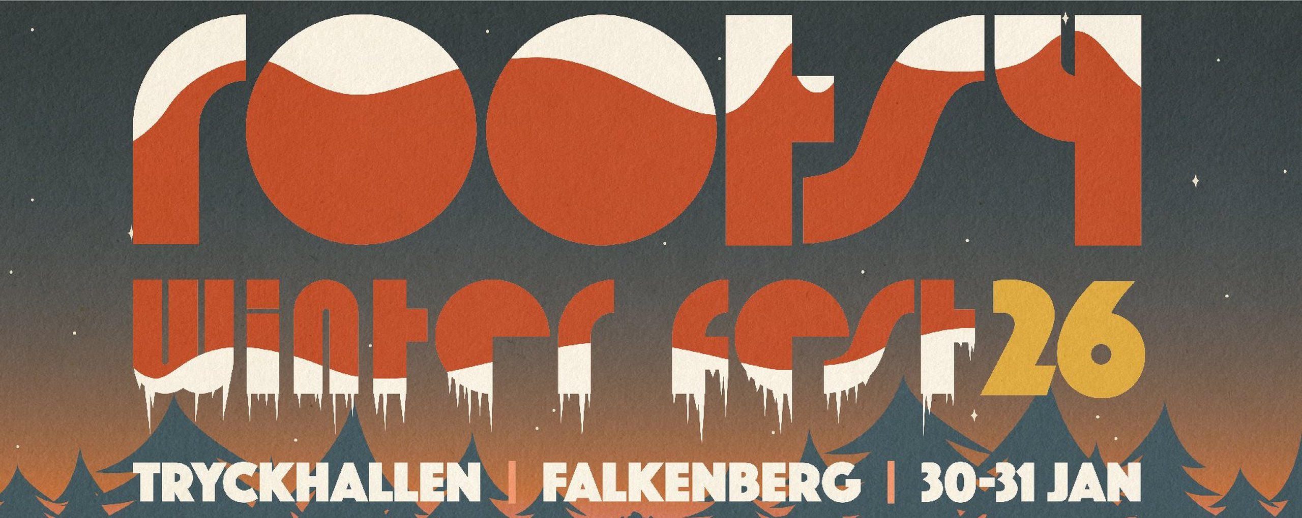 Den 30 januari och 31 januari 2026 är det åter dags för Rootsy Winter Fest i Tryckhallen i Falkenberg.